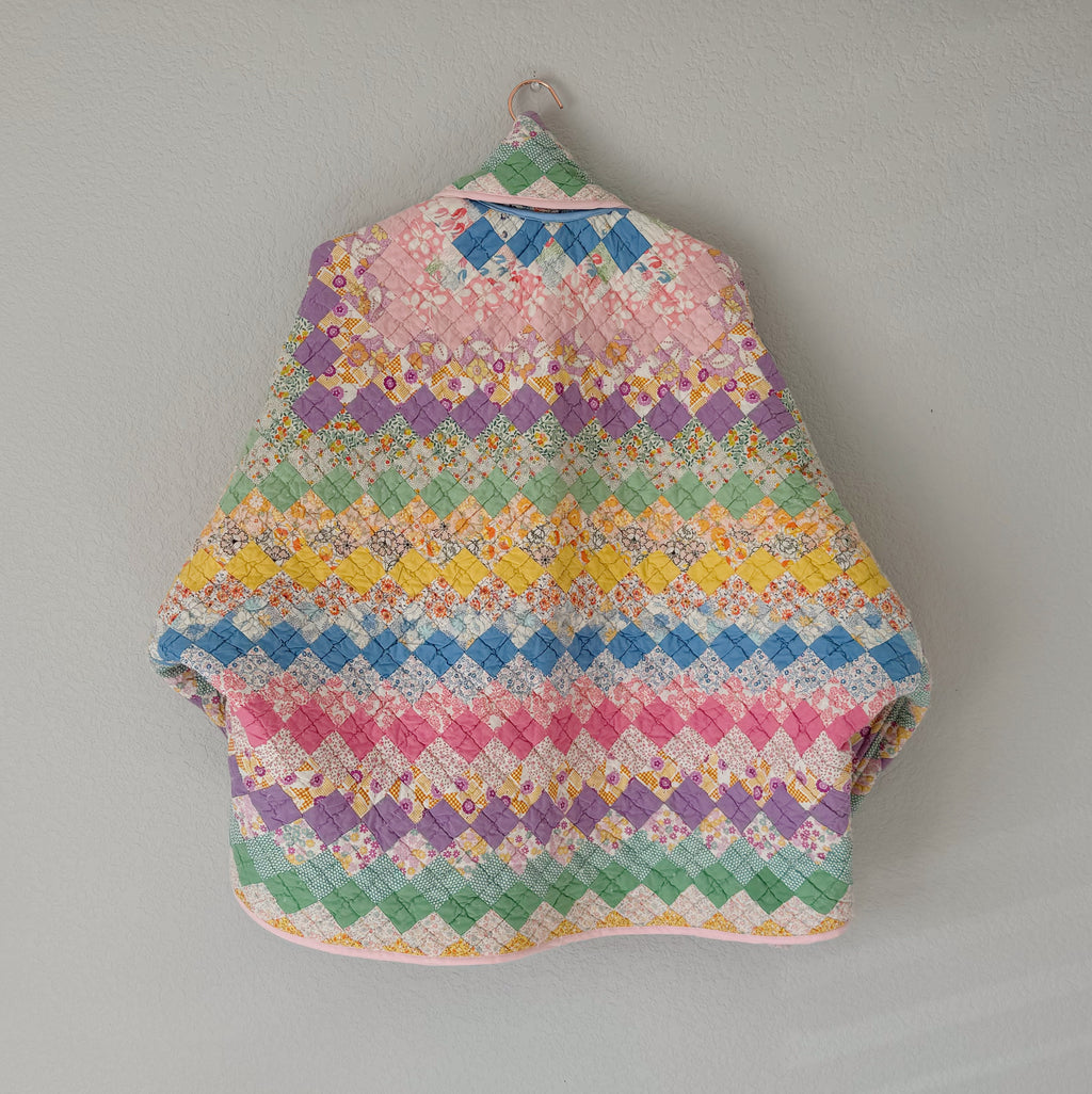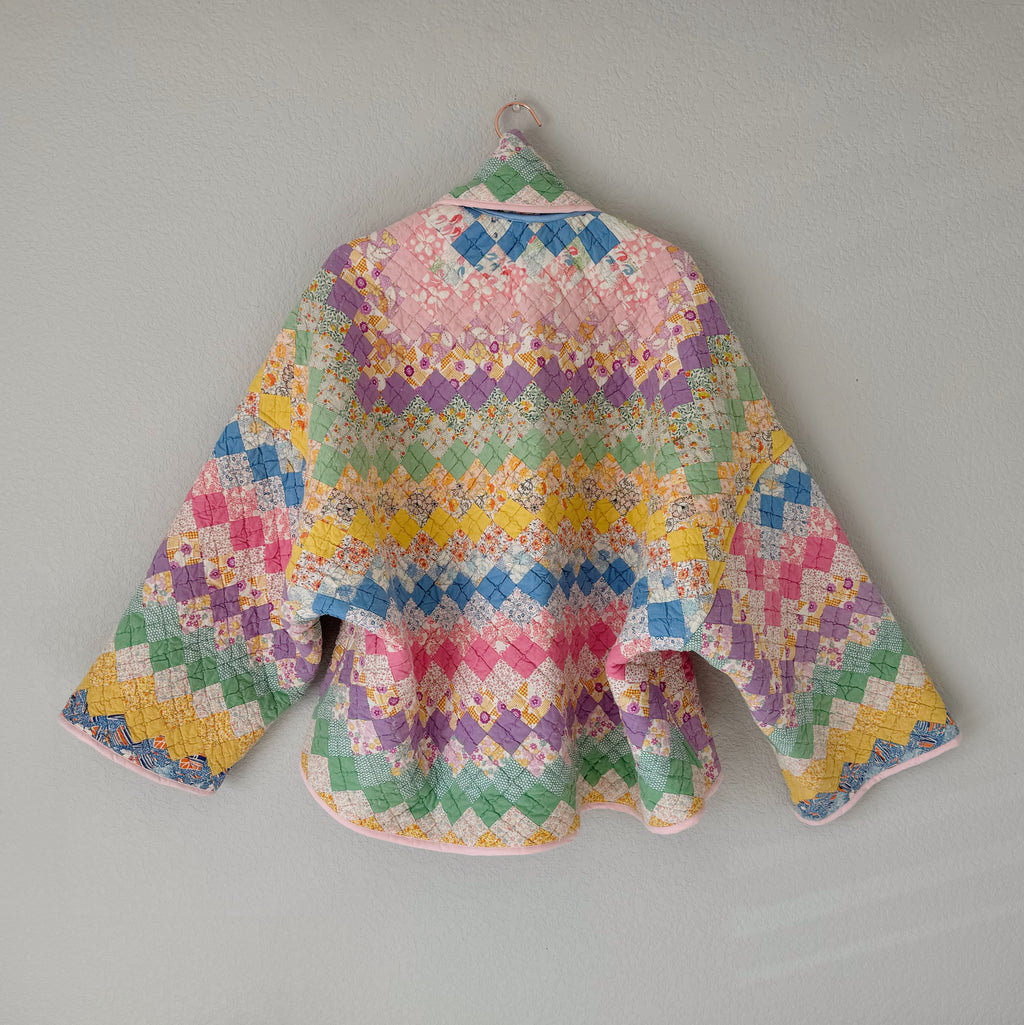 Please note that all of our jackets are made from antique quilts and the fabric reflects this. Our fabrics are sometimes older than 100 years and we believe that makes them perfectly imperfect. We recommend spot cleaning if necessary.