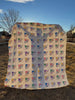 Hand quilted and hand pieced with a beautiful pastel palette. This quilt is a thin, lightweight, and has a little loft. The backing is a beautiful bright white . If you have further questions, please direct message us and we are happy to send you a video.