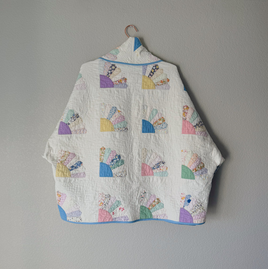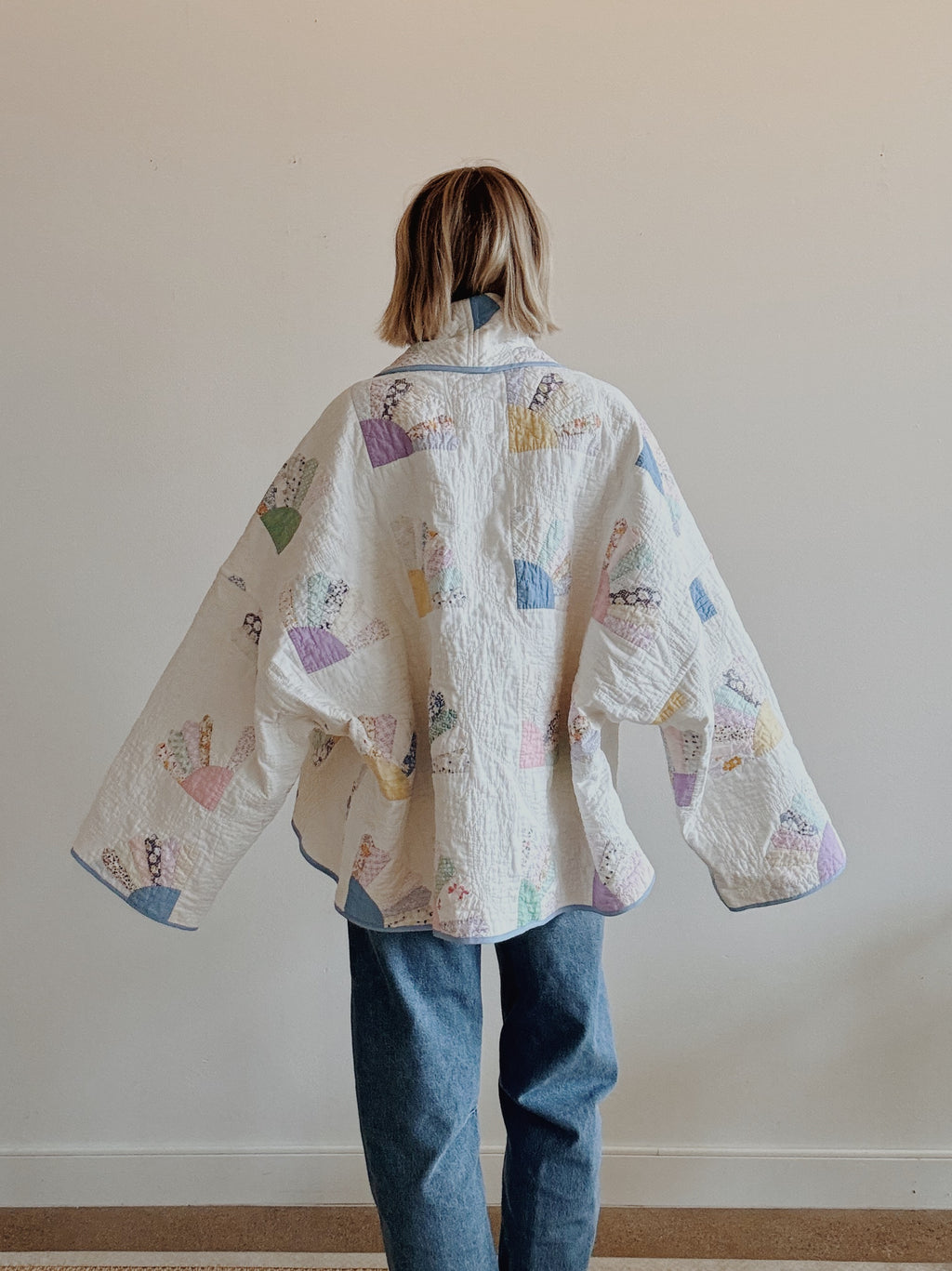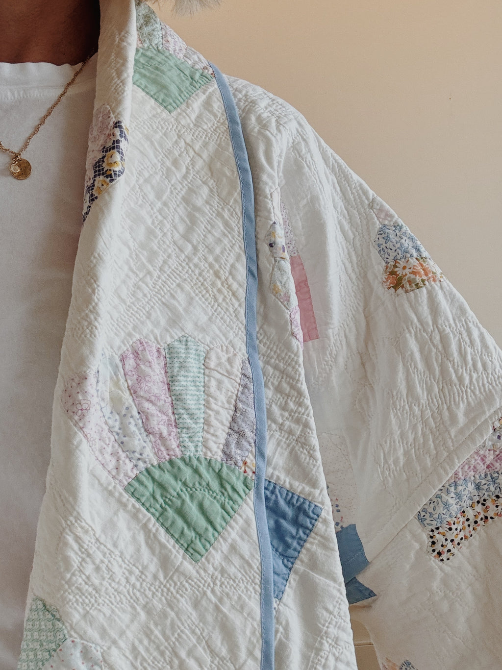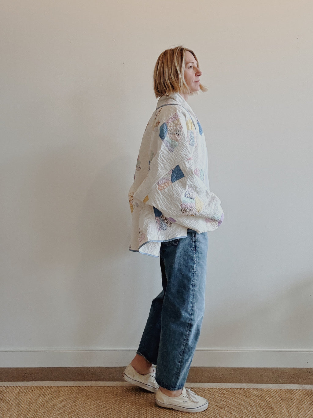 Please note that all of our jackets are made from antique quilts and the fabric reflects this. Our fabrics are sometimes older than 100 years and we believe that makes them perfectly imperfect. We recommend spot cleaning if necessary.