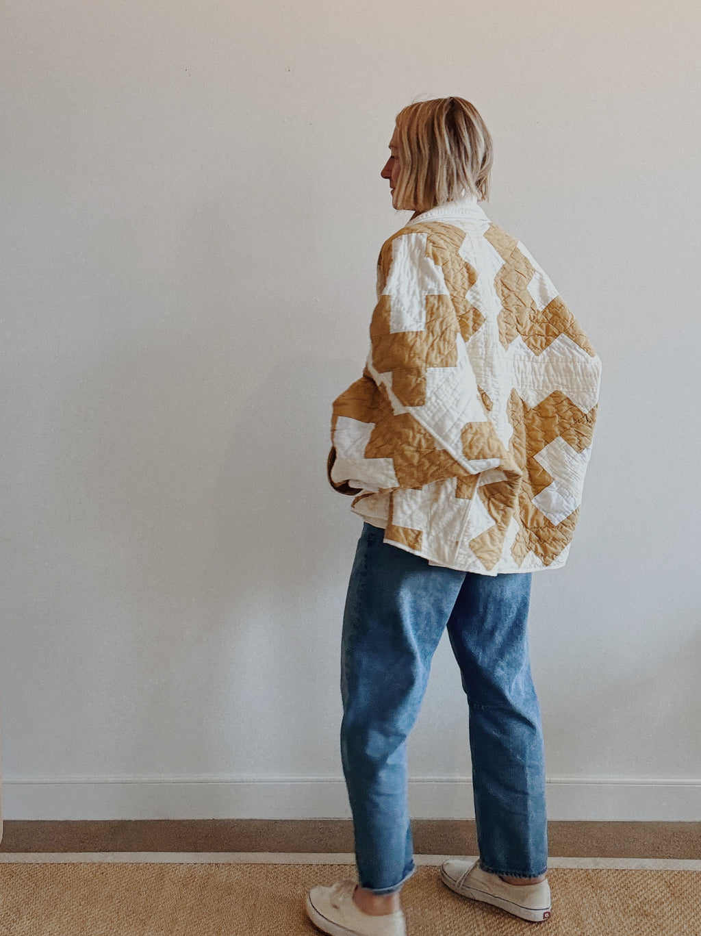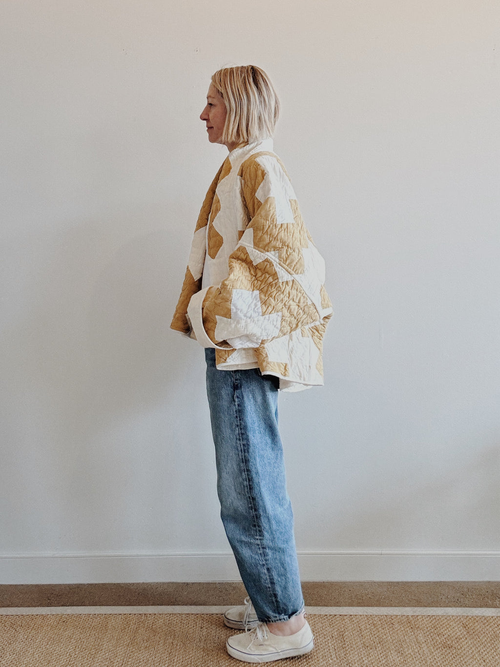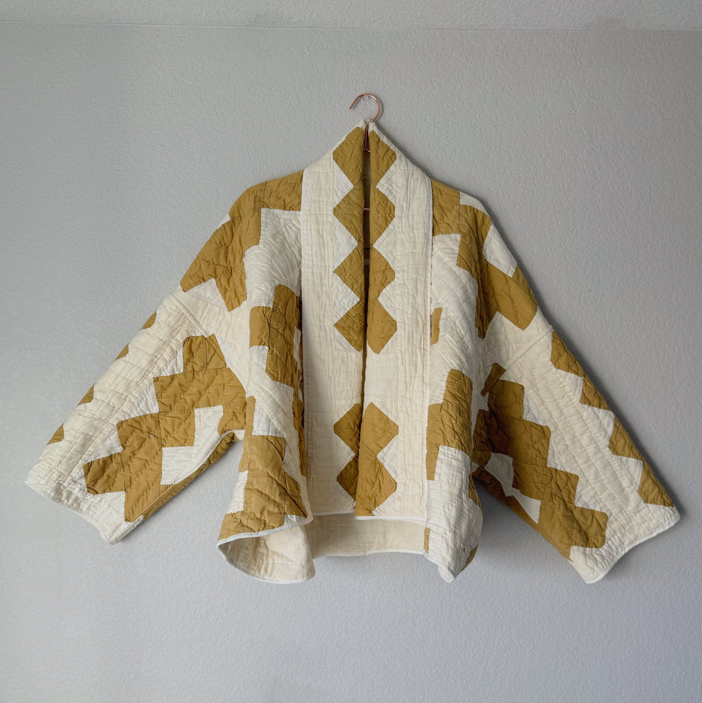 Please note that all of our jackets are made from antique quilts and the fabric reflects this. Our fabrics are sometimes older than 100 years and we believe that makes them perfectly imperfect. We recommend spot cleaning if necessary.